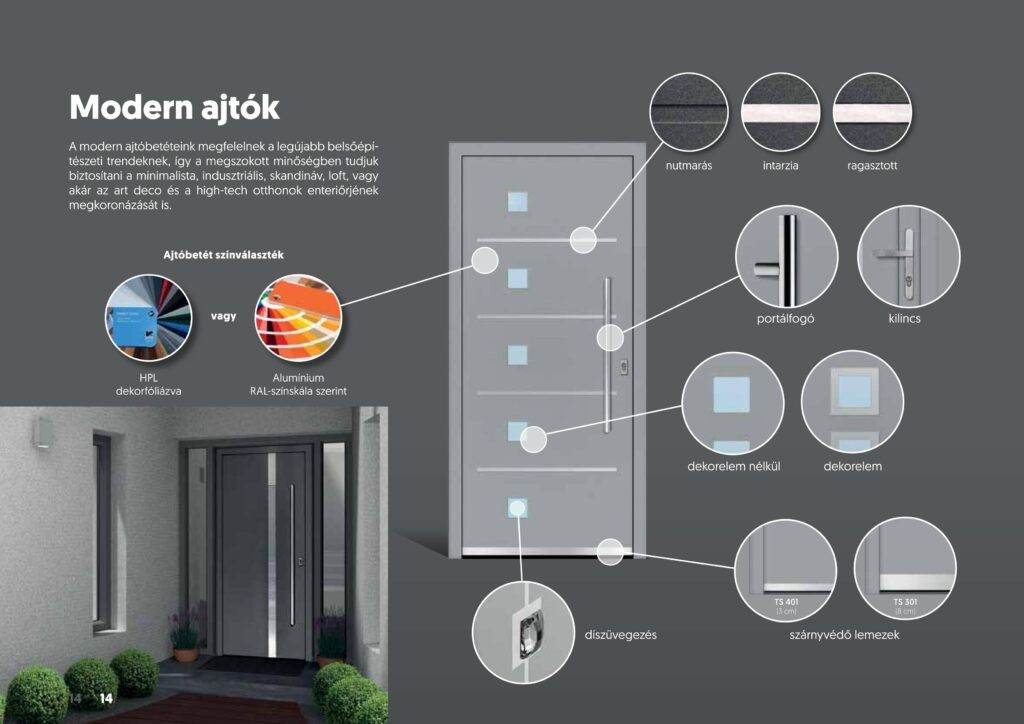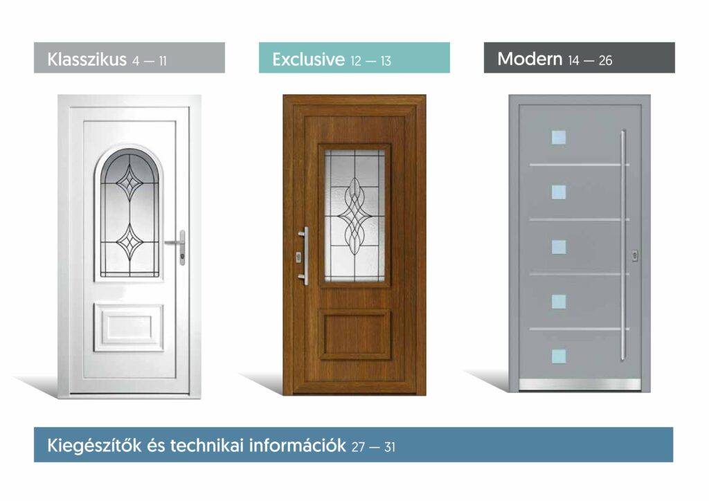 Klasszikus • Exclusive • Modern PVC • HPL • alumínium kiegészítők és technikai opciók