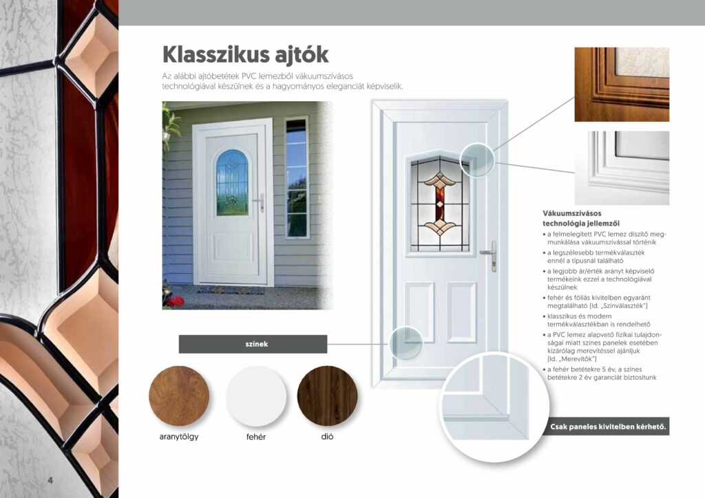 Vákuumszívásos technológiával készülő PVC ajtóbetétek, időtlen eleganciával, széles forma- és üvegválasztékkal.