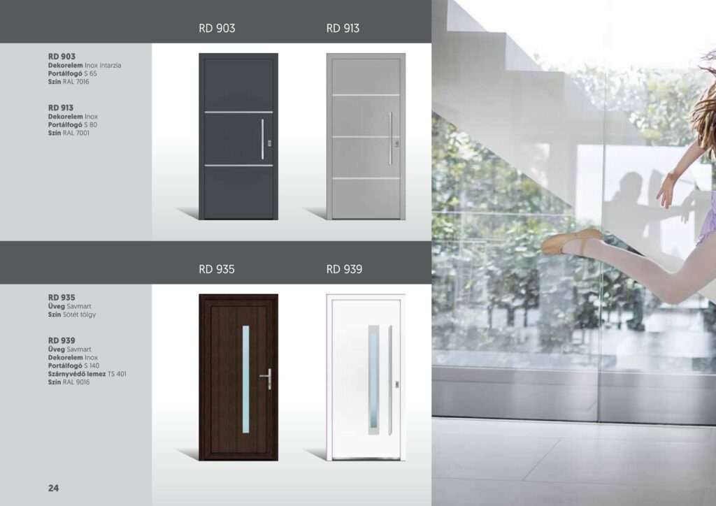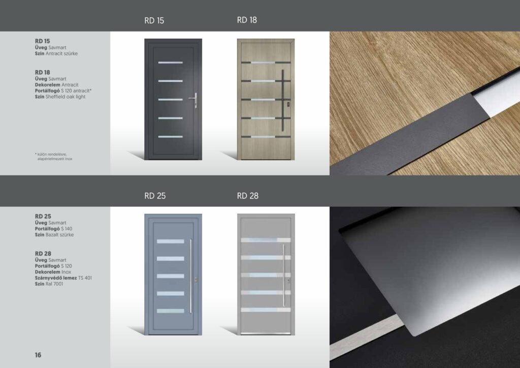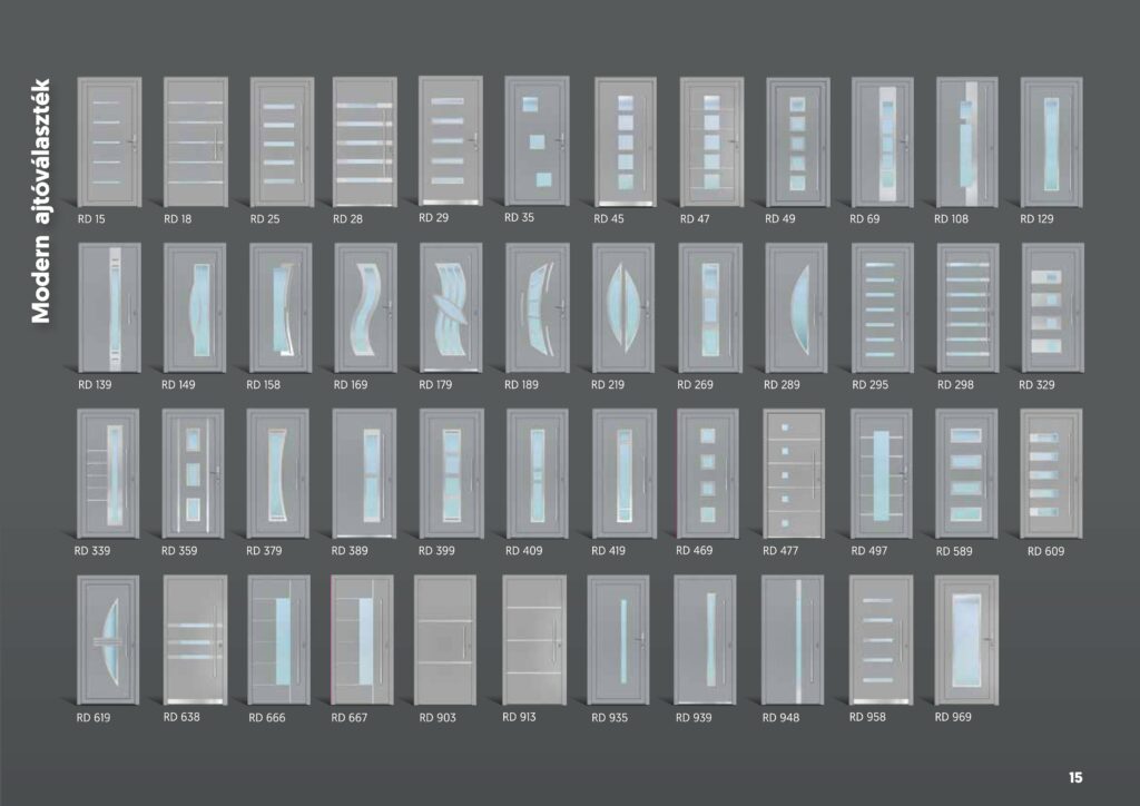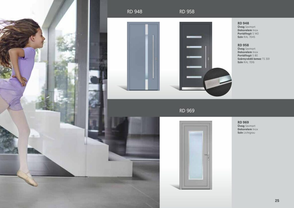 A modern kollekció a legújabb belsőépítészeti trendekhez illeszkedik. Minimalista, indusztriális, skandináv, loft, art deco vagy high-tech irányzatú otthonokhoz is kínál megoldásokat. Elérhető HPL dekorfóliás, illetve RAL szerint színezhető alumínium kivitelben.